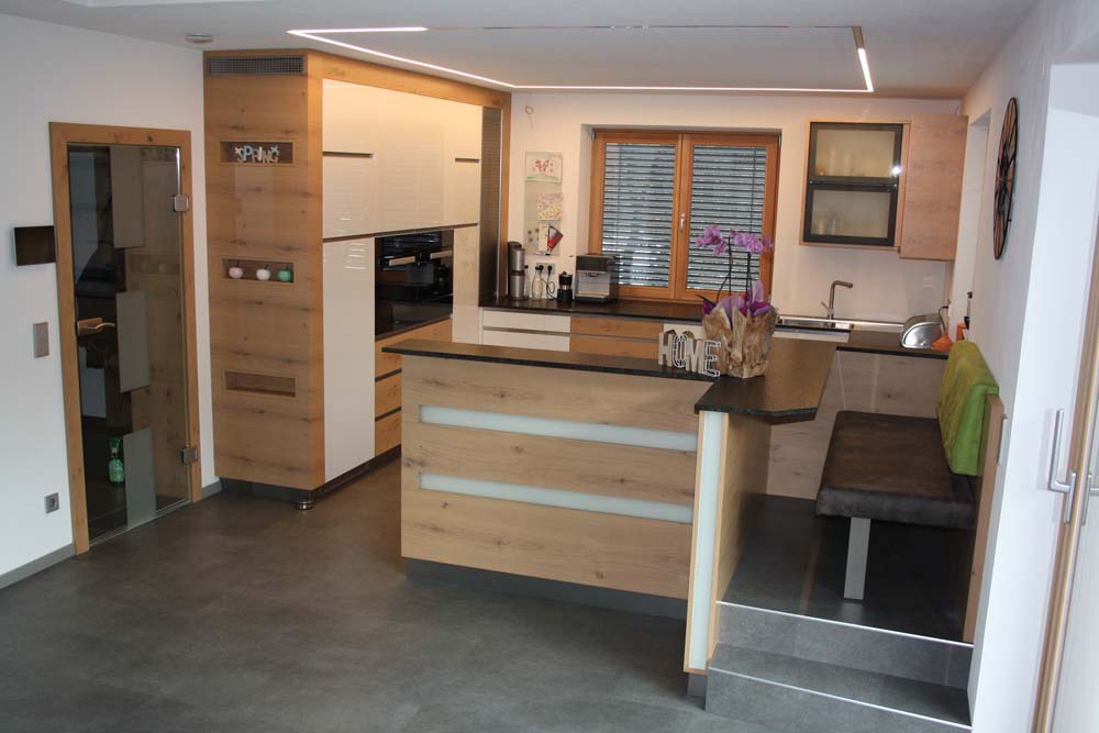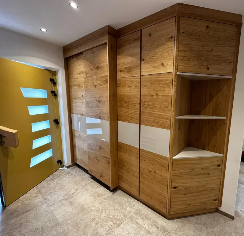Die Möbel, die unsere Tischlerei in Klebas verlassen, sind echte Einzelstücke von Ihrem Möbeltischler. Wir verwenden fast ausschließlich heimisches Holz aus den Wäldern unserer Region. Der Umwelt zuliebe und zur Stärkung der lokalen Sägewerke und Betriebe. Mit den meisten verbindet uns eine jahrelange erfolgreiche Kooperation. Wir wissen, dass Qualität zählt. Unsere maßgeschneiderten Massivholzmöbel werden mit modernsten Geräten und der neuesten Technik ausgestattet, jedoch großteils nach wie vor in liebevoller Handarbeit gefertigt. Bei uns ist alles selbstgemacht – von der Planung bis zum Einbau. Lassen Sie sich von unserer Qualität überzeugen.