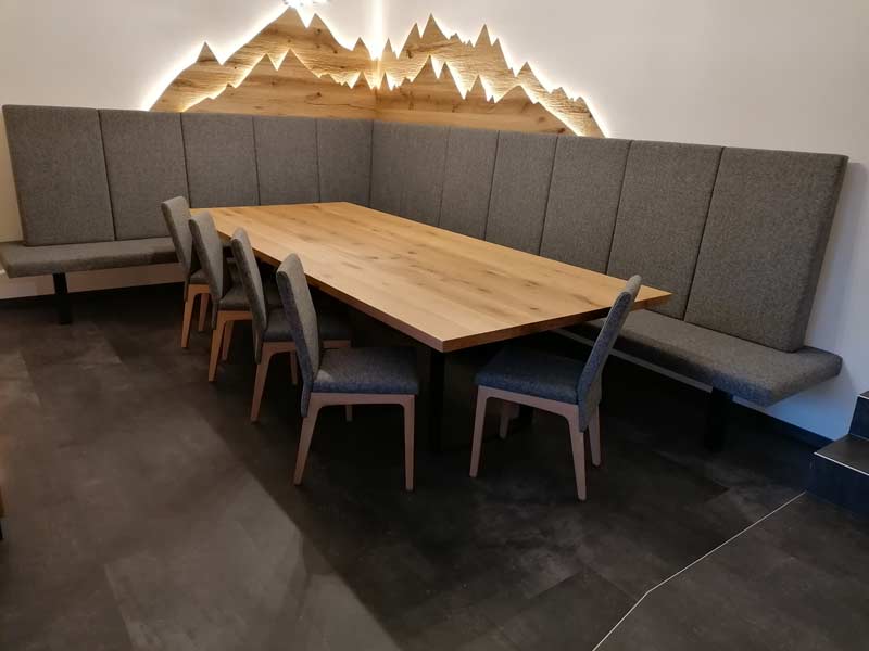 Gerne planen wir mit Ihnen die Innenausstattung Ihrer Gaststuben und Zimmer. Schaffen Sie mit Möbeln aus unserer Produktion eine besonders wohnliche Atmosphäre. Inklusive passende Stoffe für Vorhänge und Polsterungen sowie diverses Zubehör.